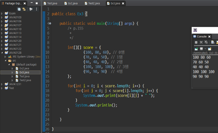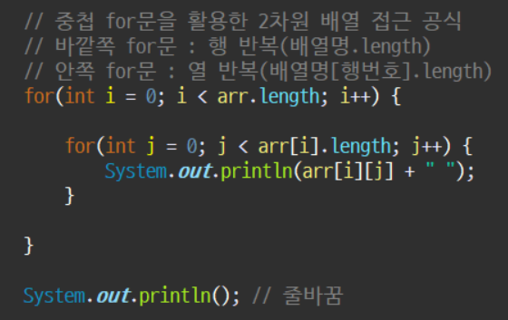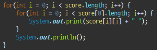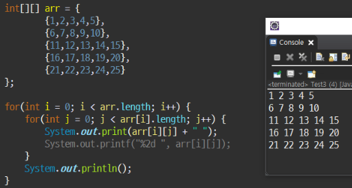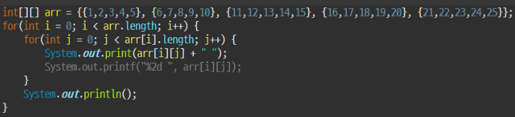 - print() 대신 printf() 로 System.out.printf("%2d ", arr[i][j]); 도 가능