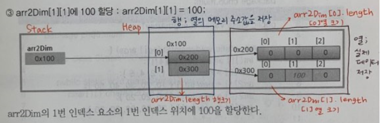 - ⇒ 실제 데이터는 열에 해당하는 공간에 저장되며 열의 메모리 주소를 행이 관리한다. 또한, 행의 메모리 주소를 배열 변수가 관리한다.