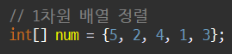 - 1차원이기 때문에 for 문 따로 작성해줌! 위에와 별개.